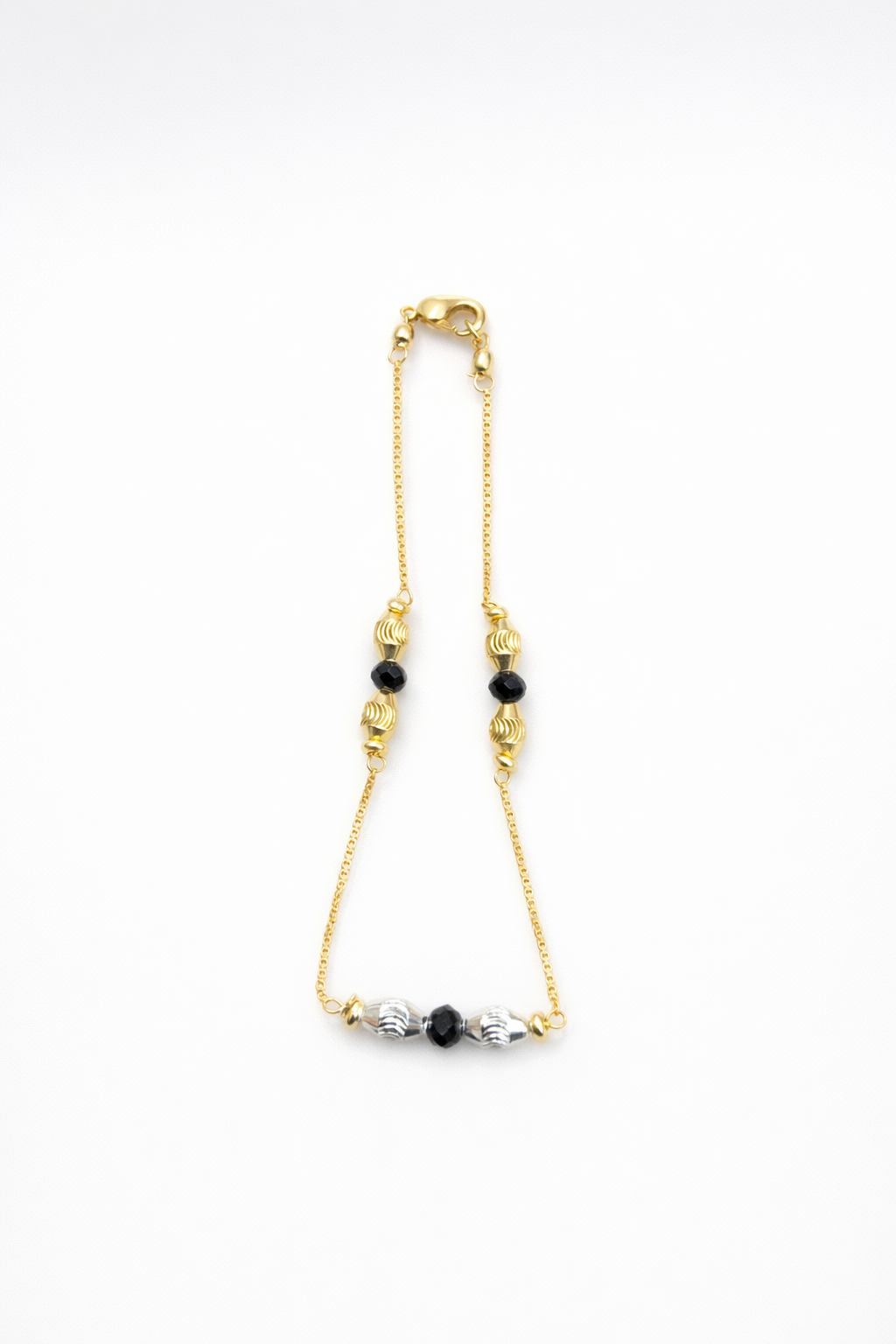 Delicate, meaningful, and effortlessly stylish, this Black Beads Bracelet is crafted to complement everyday elegance. Featuring classic black beads paired with gold-toned accents, the design reflects simplicity with a touch of tradition.